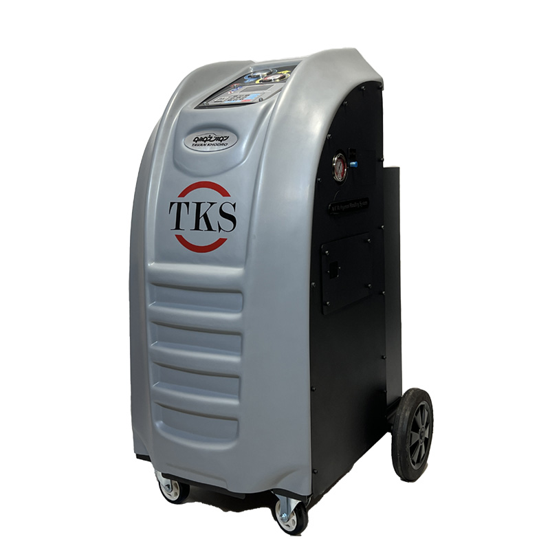 یکی از محصولات پیشرفته و اتوماتیک برند معتبر “TKS” دستگاه شارژ گاز کولر TKS-AIR FLOW است . این دستگاه با استفاده از تکنولوژیهای مدرن، عملیات شارژ و بازیابی گاز کولر را با دقت و کارایی بالا انجام میدهد. این دستگاه دارای منوی فارسی و انگلیسی دارد. از این دستگاه میتوانید برای شارژ گاز کولر خودروهای سواری سبک و سنگین استفاده نمایید . از آنجایی که میانگین هر ماشین بین ۵۰۰ الی ۸۰۰ گرم نیاز به شارژ گاز دارد، مخزن 13 کیلویی این دستگاه به شما امکان شارژ ۲۰ الی ۲۵ ماشین را می دهد.
